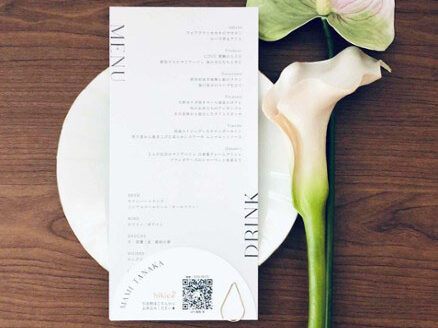 背景が透過された高品質なPNGデータとしてQRコードを受け取れるため、Canvaなどのデザインソフトを使って、プロフィールブックやメニュー表のデータに直接配置することができます。サイズ調整も自由自在(※読み取れる最小サイズには注意が必要)で、おふたりの結婚式の世界観を1ミリも損なうことなく、引き出物をデザインに溶け込ませることが可能です。
